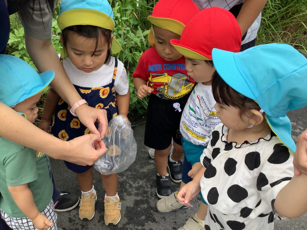 秋らしい天候に絶好のお散歩日和が続き嬉しい限りです。近くには沢山の公園と自然がいっぱいの探検場所があり、子ども達は毎日ドングリ、せみの抜け殻、小さな木の実、面白い形の葉っぱや小石を集めるのに夢中です。