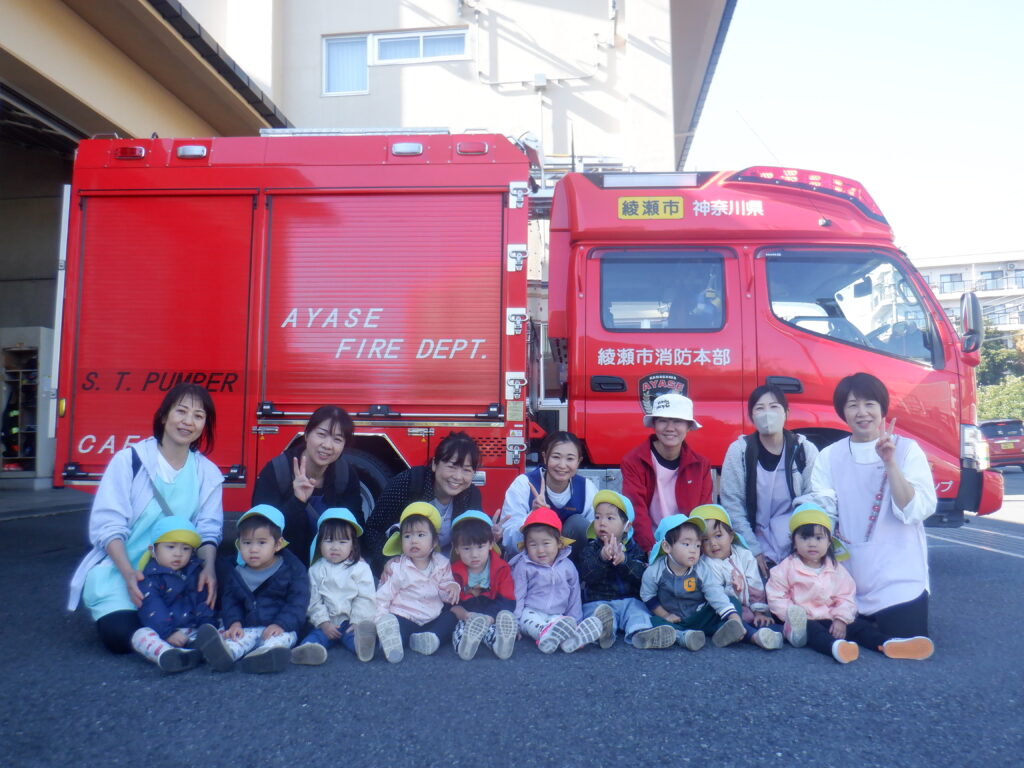 ちょうど救急車が出動する場面に遭遇し、興味と驚きの表情を見せていた子どもたちです☆