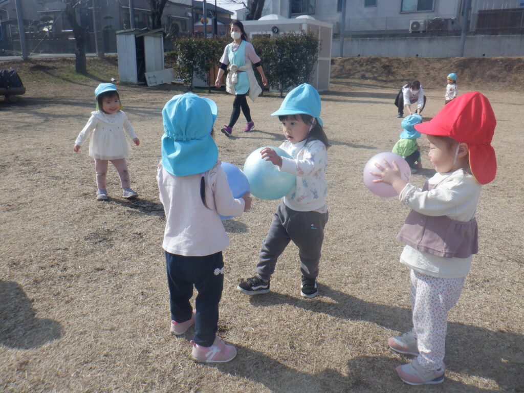 暖かな日差しの中、上着を脱いで元気いっぱいに遊ぶ子どもたちの姿に、春の訪れを実感します。