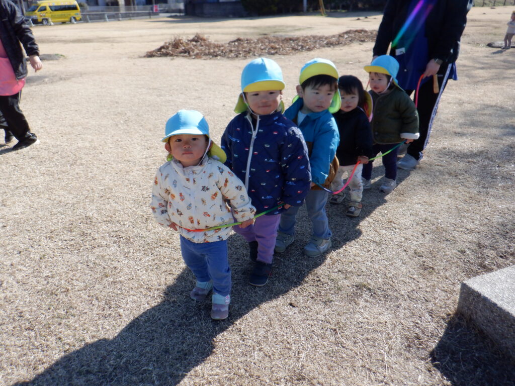 寒さに負けず、戸外では走ったり探索したりと、元気いっぱい体を動かして遊んでいます。