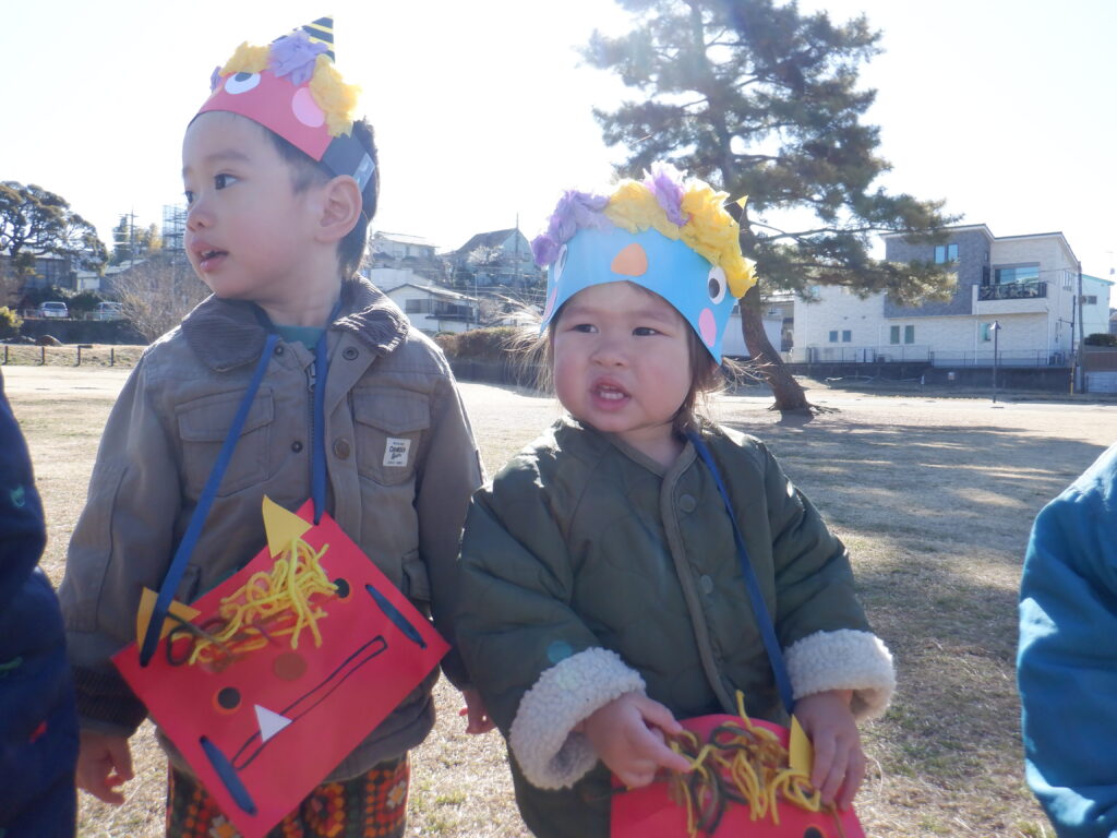 「おにはそと!ふくはうち!」と元気な声を響かせながら、みんなで力を合わせて悪い鬼を退治!少しドキドキしながらも、行事ならではの雰囲気を楽しむ姿が見られました。