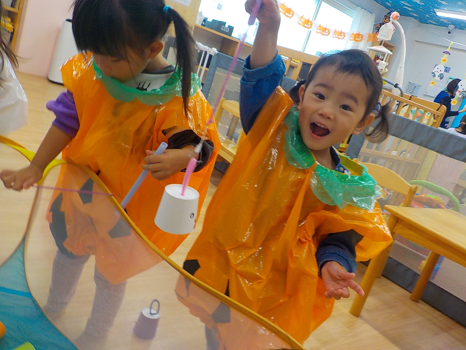 ハロウィンの絵本を観た後、衣装に着替えて写真撮影。