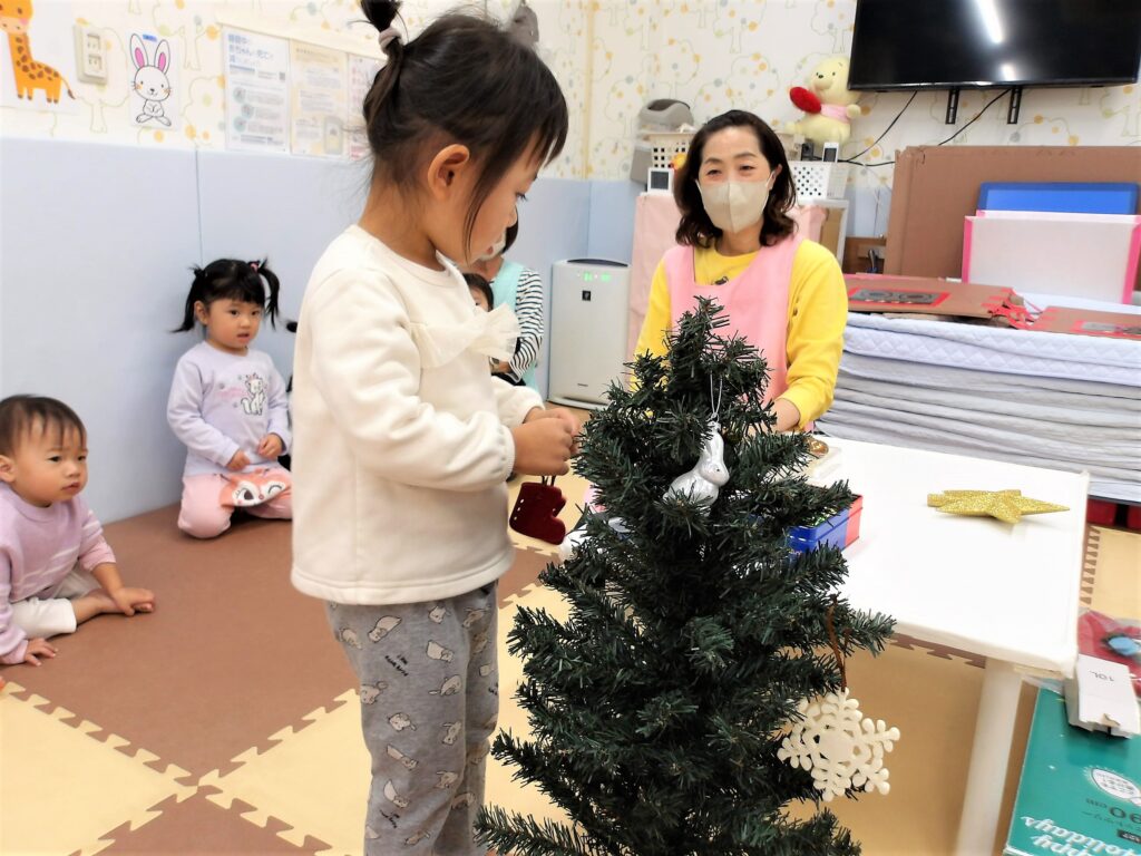みんなで飾りつけをする姿もとても可愛らしく、好きなオーナメントを選んでそっと飾るその様子に、心があたたかくなりました。