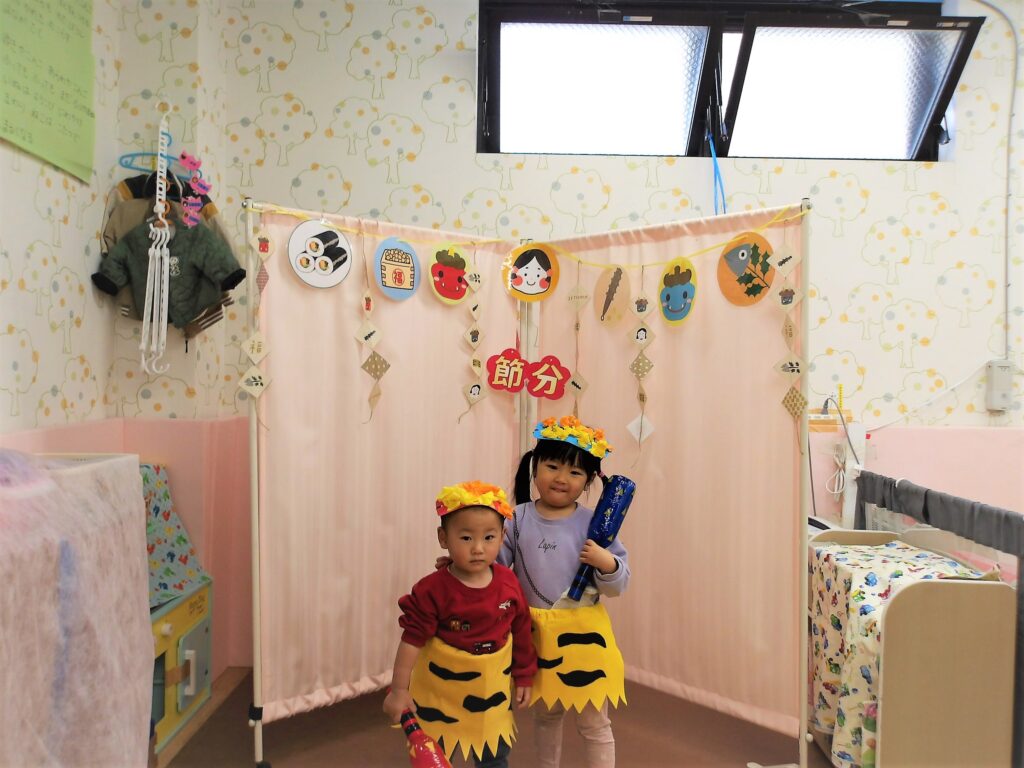 鬼の登場に驚いて泣く子や、勇気を出して立ち向かう子など、さまざまな姿を見ながら、季節の行事を楽しく過ごすことができました!