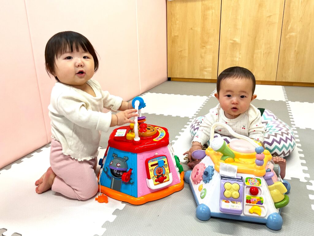 お部屋では、新入園児のお友だちが好きなおもちゃに触れながら、ゆったりと遊ぶ姿が見られました。