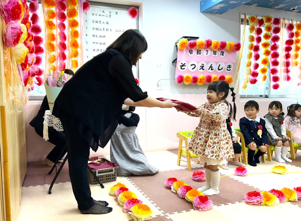緊張しながらも一人ひとりしっかりと証書を受け取る姿はとても立派で、子どもたちの成長を感じる心温まるひとときとなりました(^^♪