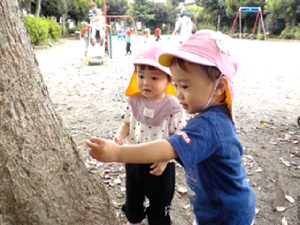 天気が良い日には、近隣の公園や周辺散歩に行き、四季の移り変わりを感じながら体を動かして遊んでいます。