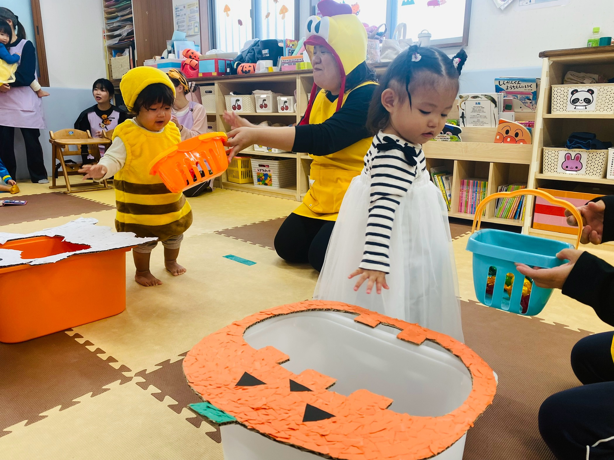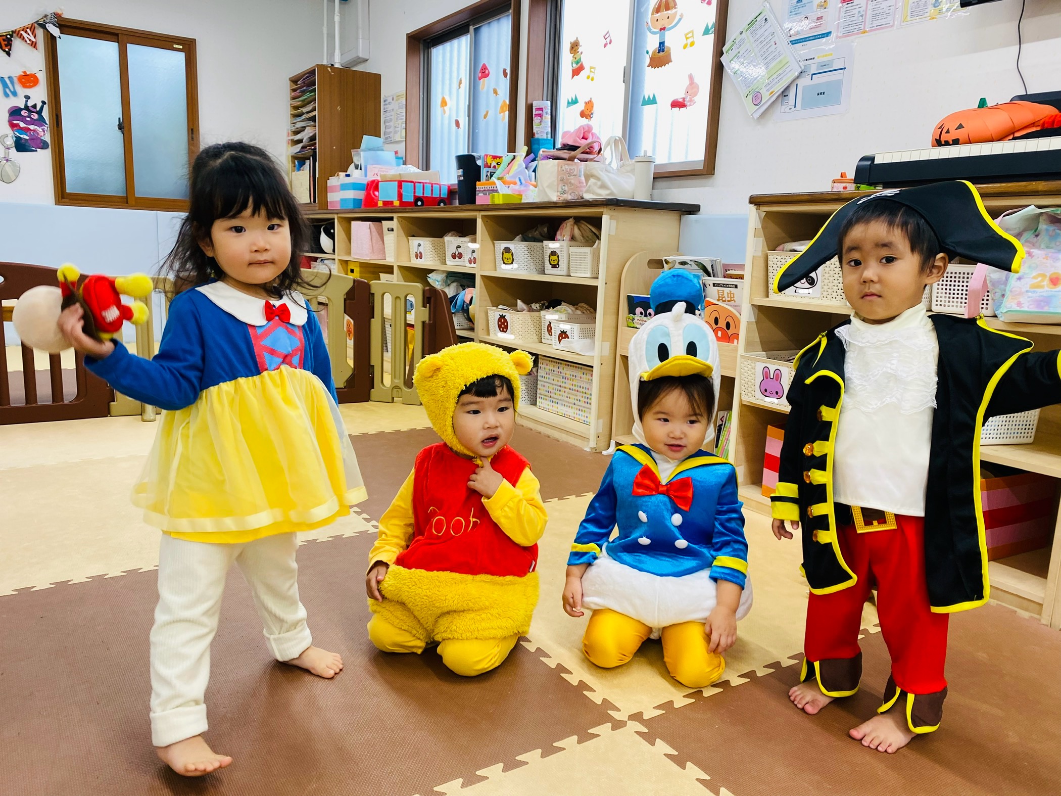 ハロウィン仕様に飾り付けされた園内にかわいい衣装で登園してきた子どもたちは、