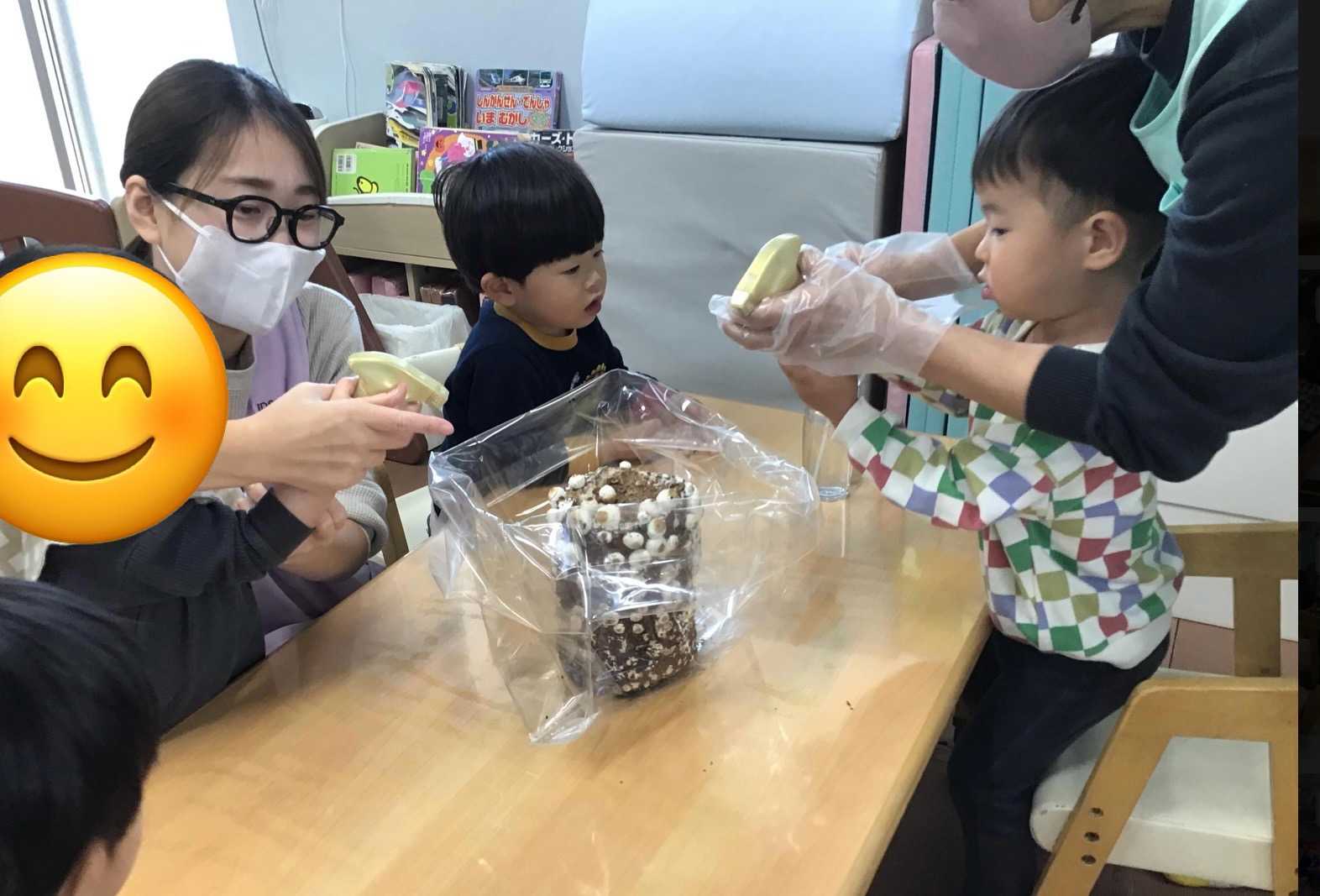 Smile Englishに食育のしいたけ作り、製作で使う枯れ葉を集めに行ったりと楽しいことが盛りだくさんの