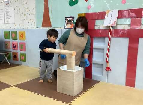 今年は、初詣にお餅つき、凧揚げ、羽根つきと盛りだくさん!園内に子どもたちの賑やかな声が響き渡りました。
