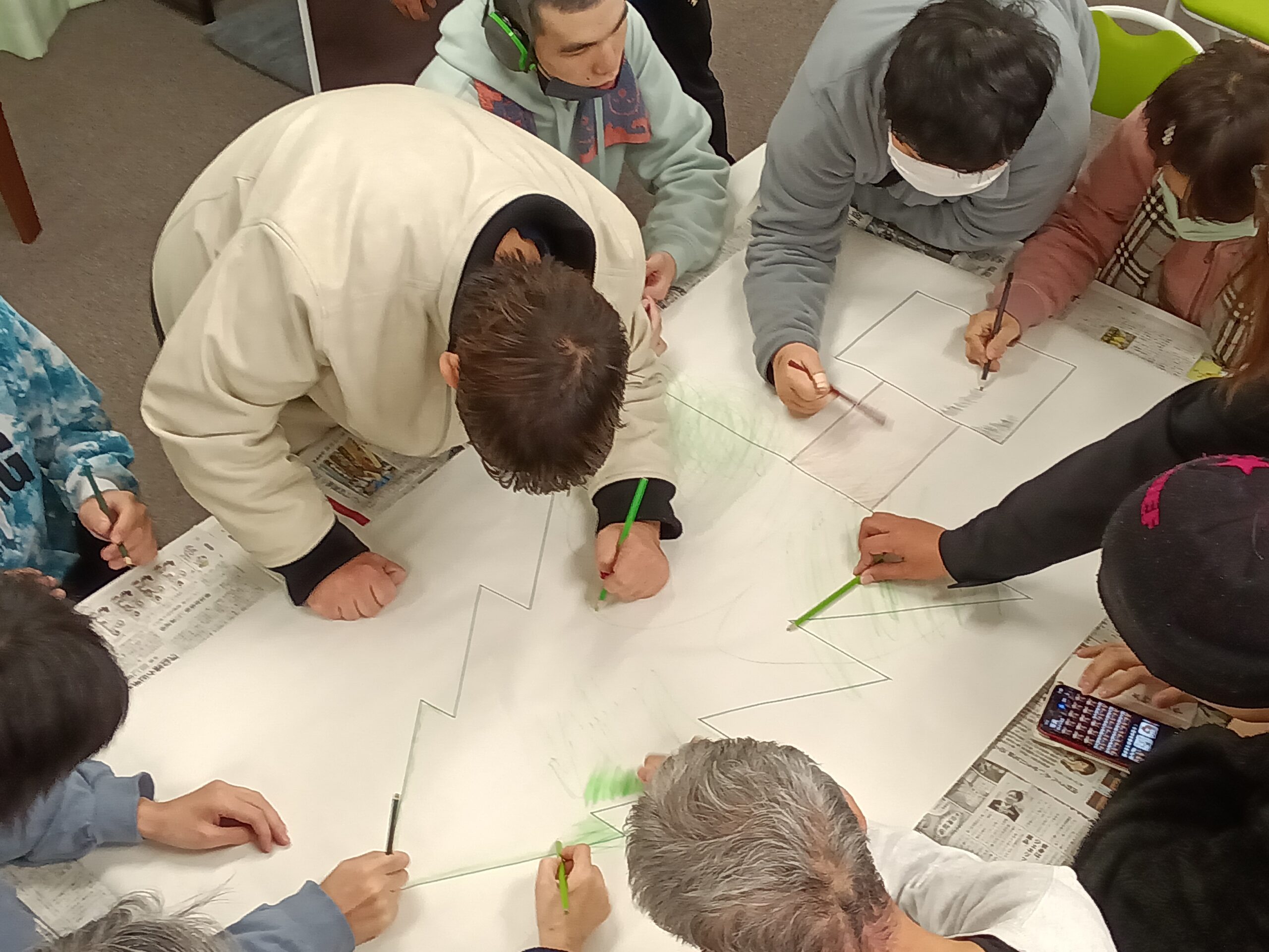 昨年12月は、クリスマス会を開催し、利用者の皆さまと楽しい時間を過ごしました。みんなで協力して作り上げたクリスマスツリーは、飾り付けをするたびに笑顔が広がり、事業所内が明るく温かな雰囲気に包まれました。また、地域貢献活動にも取り組み、地域の一員として人と人とのつながりを感じる貴重な機会となりました。