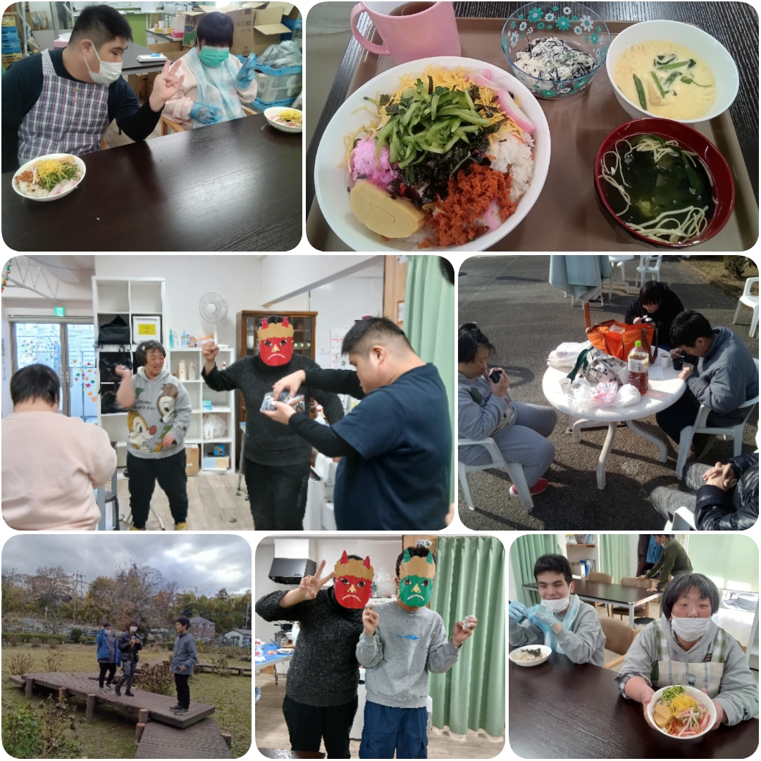 節分では手作り昼食で、チラシ寿司、茶碗蒸し、白和えと挑戦して、皆様もワクワクされていました☺️