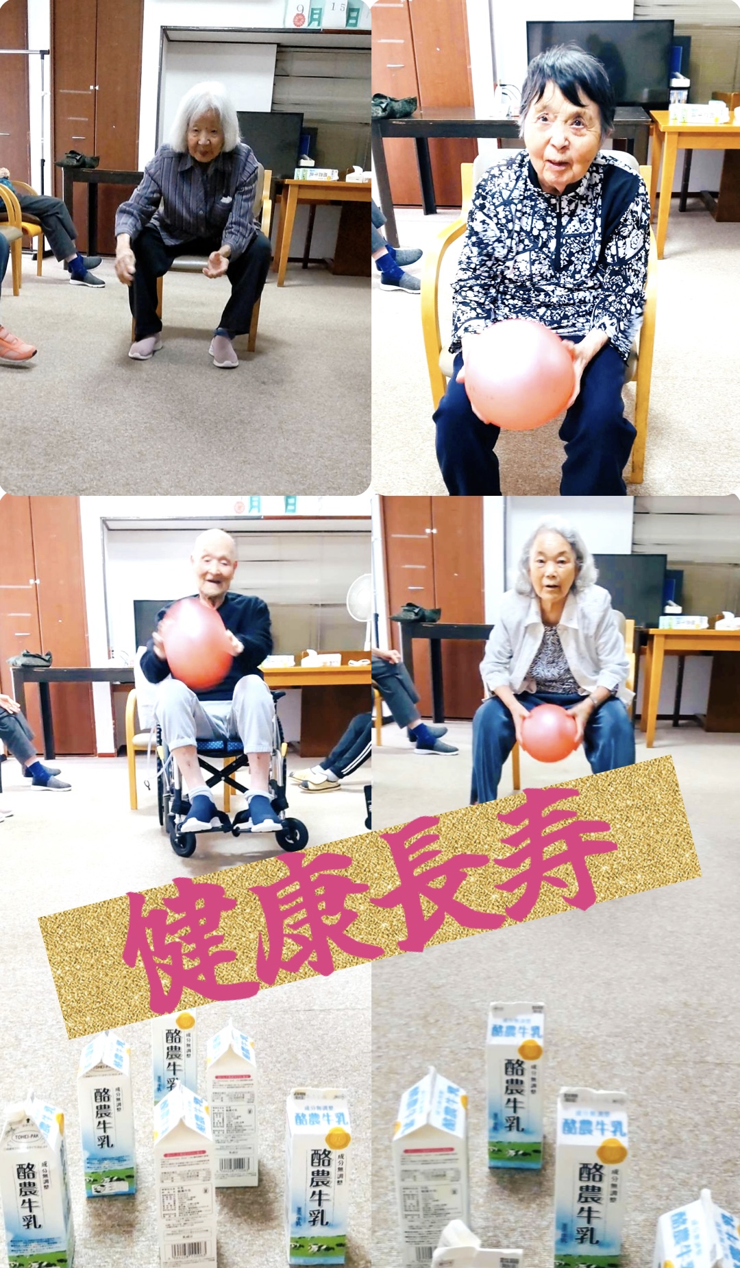 午後からはボールを使ったレクリエーションで体を動かし、「健康長寿」を願って楽しく運動!