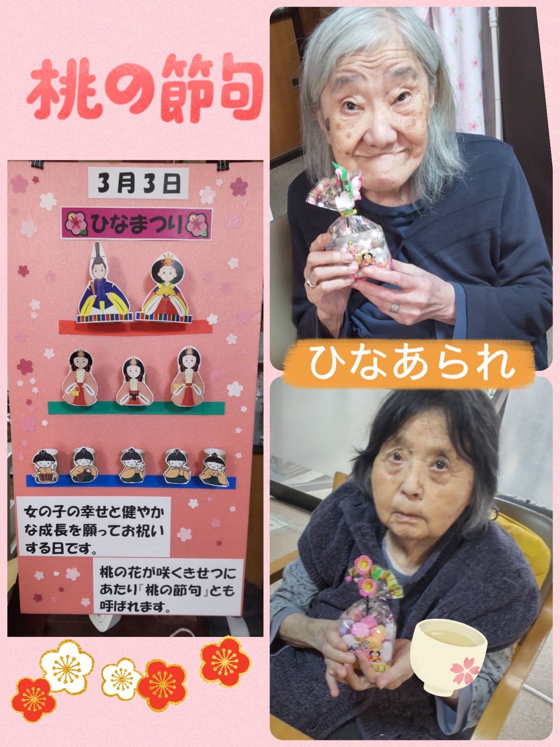 おやつにはひなあられを召し上がり、季節の行事を楽しみながら穏やかなひとときをお過ごしいただきました。