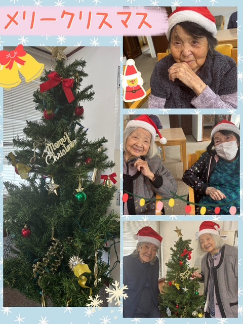 ツリーを見ながら「もうそんな時期だね」「きれいだね」と会話が広がり、おやつにはケーキを食べ楽しみました。