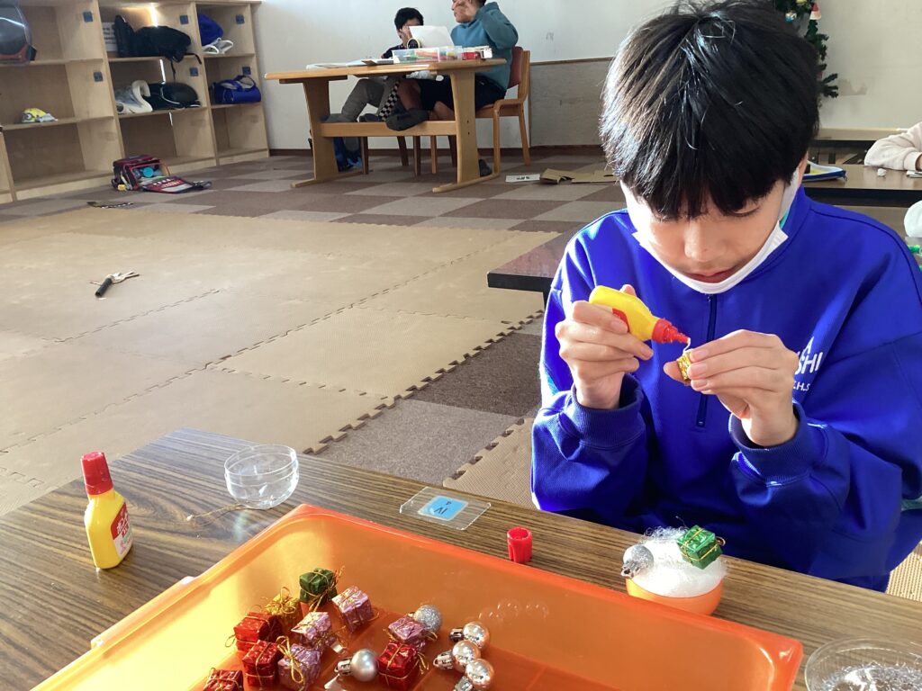 12月の愛川では、季節行事としてクリスマスを多く取り入れ、オーナメント作りやクリスマスにちなんだ折り紙制作に取り組みました。季節感を楽しみながら、手先の操作や集中力を育む機会となりました。