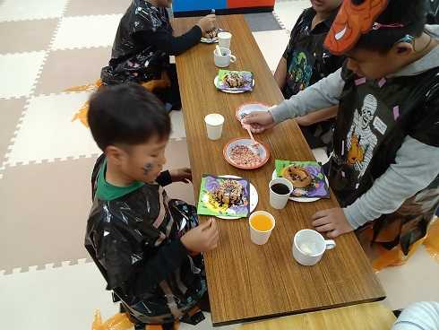 月末にはお待ちかねのハロウィンパーティーを開催!仮装をした子どもたちは、それぞれの個性を輝かせながら登場。おやつデコレーションでは、自分だけの“ハロウィンスイーツ”を作り、みんなで美味しくいただきました。