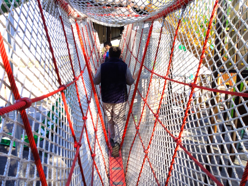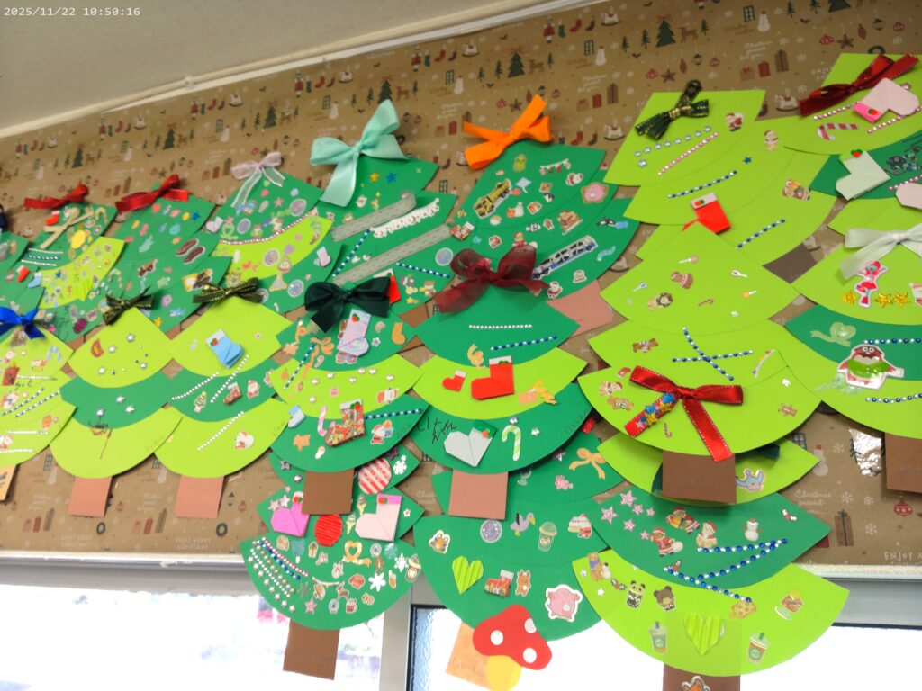 今月は、藤沢「少年の森」のアスレチックに挑戦し、お友だちと励まし合いながら取り組む姿が見られました。難しい遊具をクリアする姿はもちろん、無理をせず「やめる勇気」をもつ選択もとても素晴らしく、みんなの成長を感じました。さらに焚火で焼きマシュマロを味わい、自然の中で特別な時間を過ごしました。厚木「荻野運動公園」では大きな遊具や目新しい遊具に夢中となり、思い切り体を動かしながら遊ぶ姿が印象的でした。クリスマスツリーの工作では個性豊かな作品が完成し、冬休みに向けてワクワクがふくらんでいます。