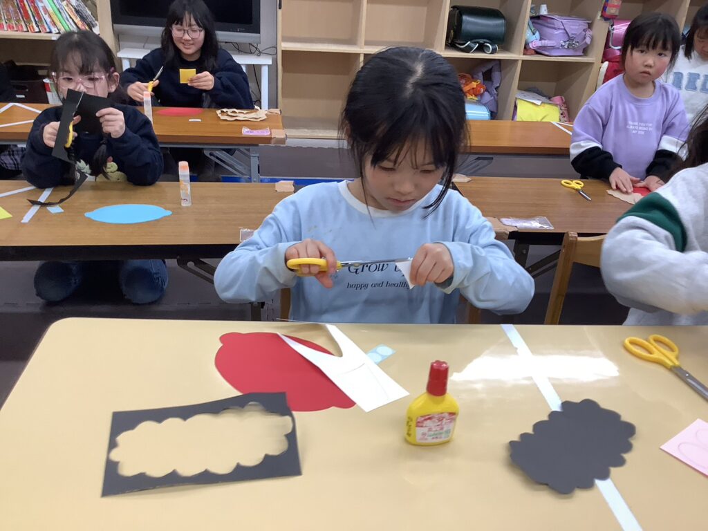 制作活動では、色や素材選びを楽しみながら、集中力や表現力を育んでいます。