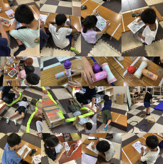 <自由時間でのごっこ遊び・オオカミ探しゲーム・SSTゲーム・所外療育での社会体験・買い物体験・日直当番での号令・進行など>