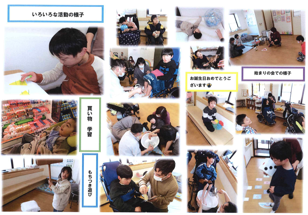 これからもいろいろな活動を経験しながら、お子さまの「できた」「たのしい」を大切にし、良い所を見つけ褒めながら関わっていきたいと思います。
