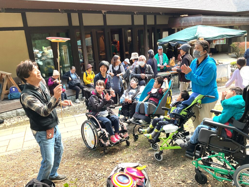 「七沢森のまつり」では地域のお子様に混じって、皿回しや手品に挑戦。