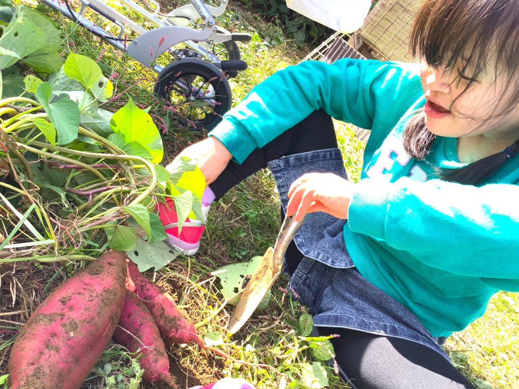「芋ほり&焼き芋体験」では収穫の楽しみとアツアツの焼き芋にお腹も満足でした。
