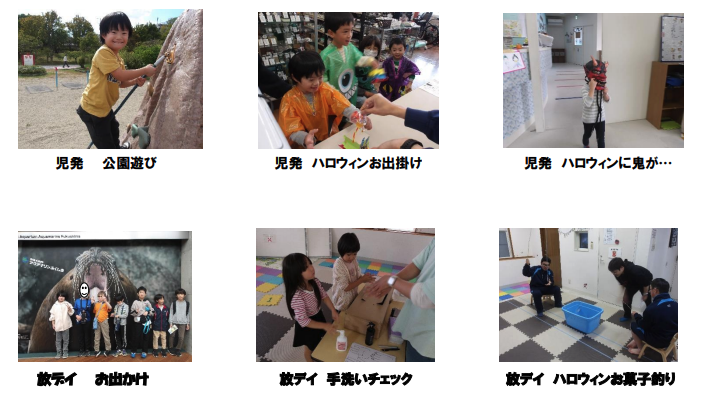 その他、行事としてハロウィンもあり、児発は、近所のお店の方に協力を頂き、