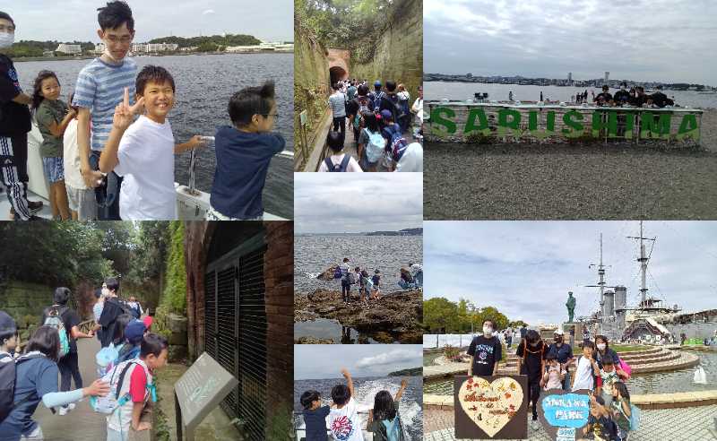 横須賀では猿島へ船で渡りました。自然豊かな島内をハイキングしながら、戦時の遺構を見学したり磯で生き物探しをしたりして楽しみました。