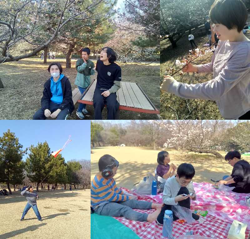季節外れの陽気の中、相模原公園へ行きました。シートを広げて昼食をとり、風が強い日だったので凧揚げで遊んだり、満開の梅の花や菜の花をめでたりもでき、五感を使って春の訪れを感じることができました。