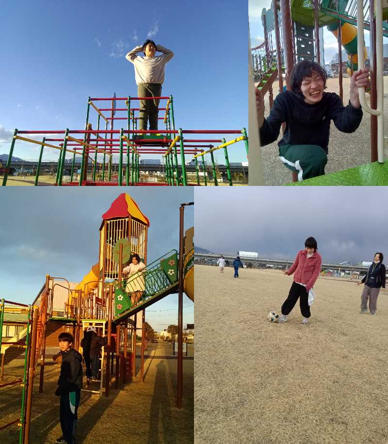 12月にできたばかりの公園に行きました。目新しい遊具や大きな芝生広場に大喜びで、寒さに負けることなく元気に動き回っていました。