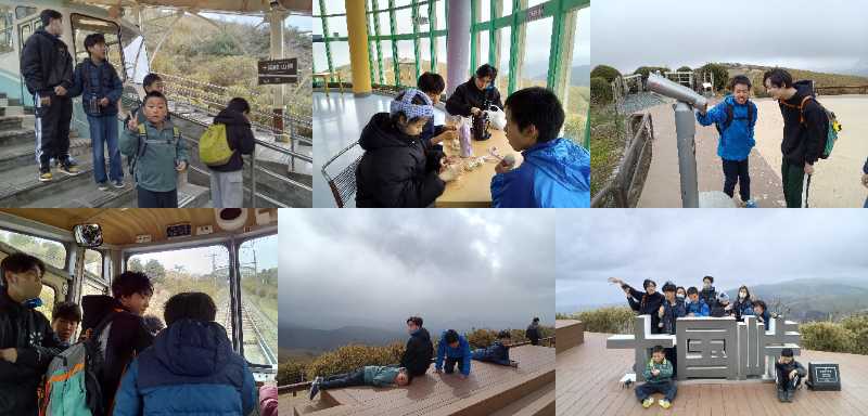 十国峠へ外出しケーブルカーに乗りました。車両のすれ違いの場面では興味津々で見ていました。山頂付近で街並みを見下ろしながら昼食をとり、展望台からの眺めを皆で楽しみました。