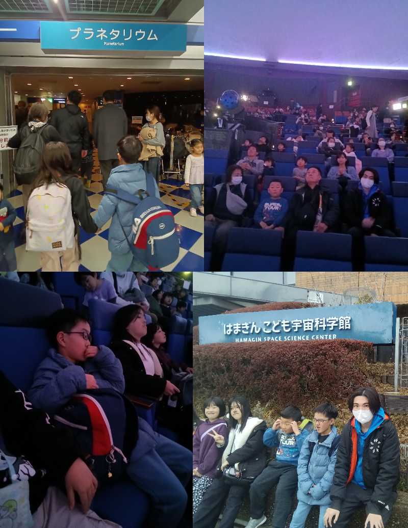 科学館ではプラネタリウムも鑑賞しました。ドラえもんの宇宙に関する映画を見たあと、今夜の星空の再現と説明があり、星座の形や天体の位置や動きを観察できました。