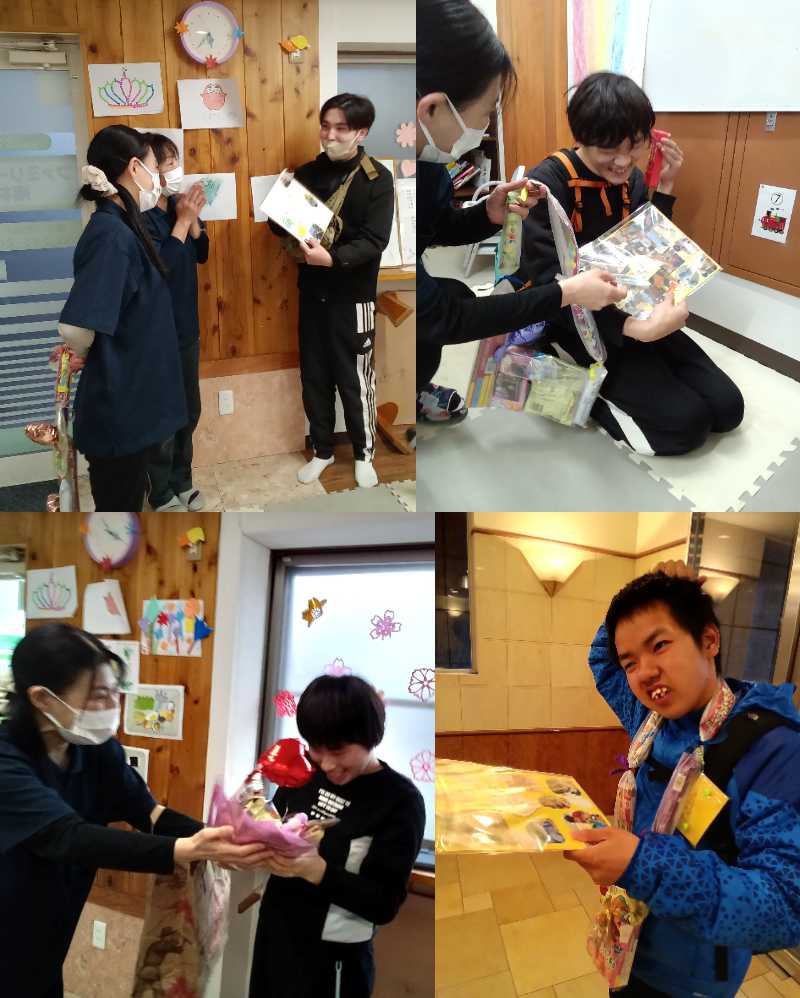 この春も卒業生が巣立っていきました。長い月日をともに過ごした子供たちとのお別れを惜しみつつ卒業祝いの品をお渡しして、卒業と新しい門出を皆で祝福しました。