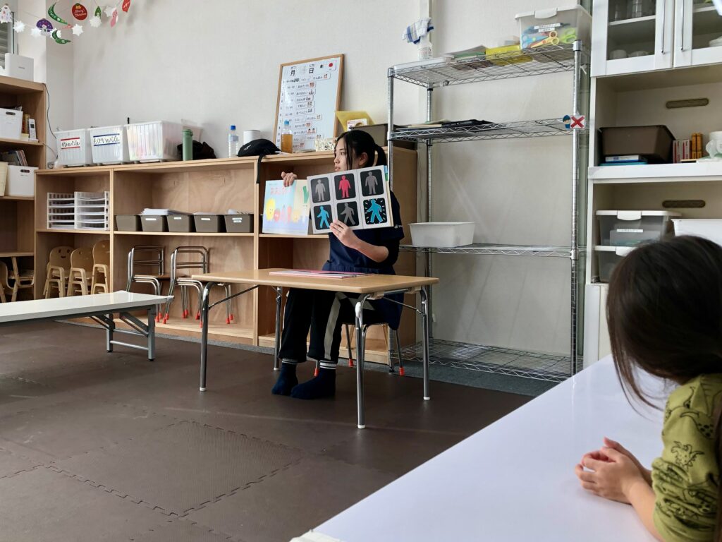 お友達との関わりを通じて社会性を育むために、協力して行う活動を取り入れています。相手を思いやる心やルールを守ることの大切さを学ぶことができます。遊びのあとに「お片付けタイム」を設け、協力して玩具を片付けることで責任感や協力する楽しさを経験することができます。子どもたちが安心して交流できる環境を整え、自然なコミュニケーションを促しています。就学に向けては、整理整頓の大切さも同時に学んでいます。