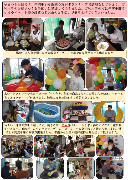 行事はお子さんがたの社会性を育てる上で必要不可欠と思います。社会性や社会的な意欲に繋がって行くからです。